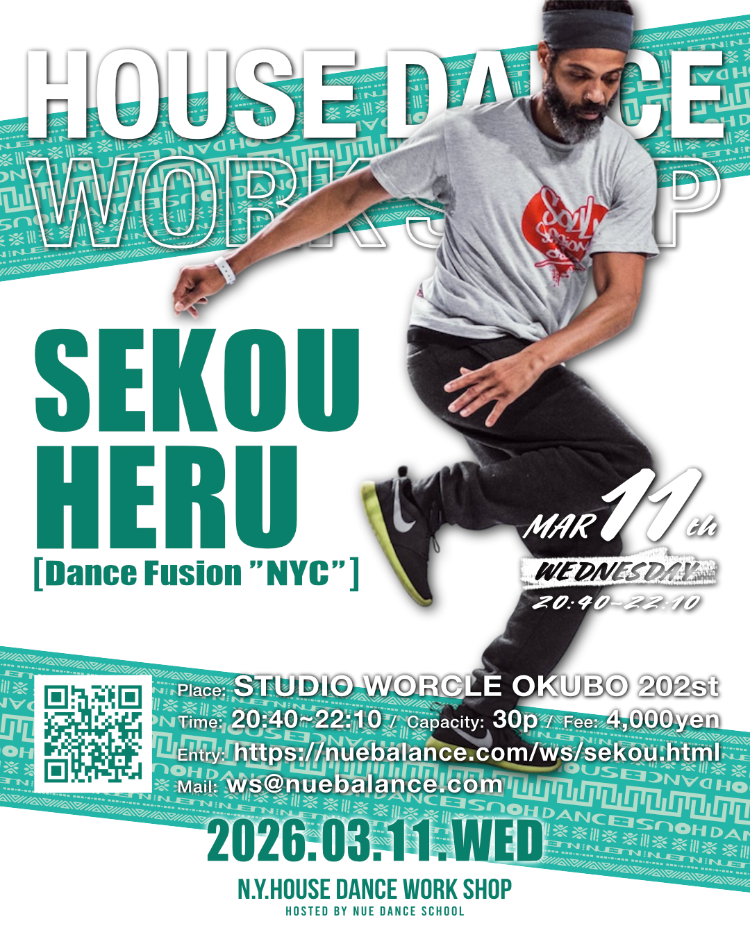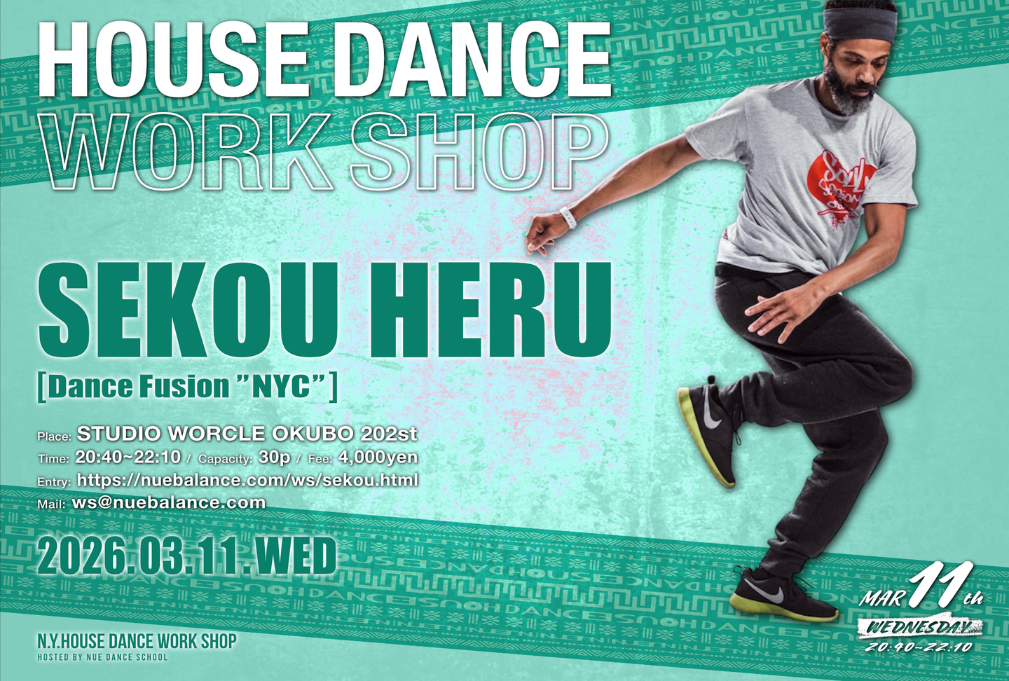 SEKOU HOUSE DANCE WORK SHOPを3月11日(水)studio worcle okuboにて開催します!!